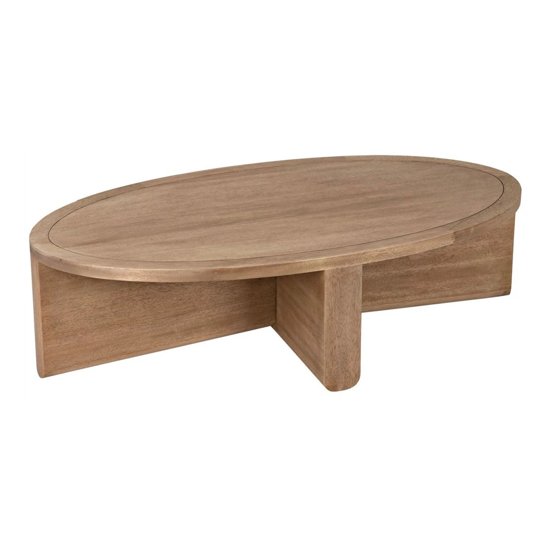 The Dayton Coffee Table is fabricated from a washed Walnut wood and crafted into a sleek oval shape, supported by a sturdy cross base. This elegant and naturally beautiful coffee table is perfect for your living space and adding a lived in feeling.