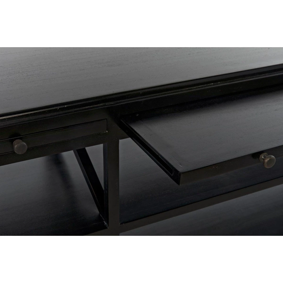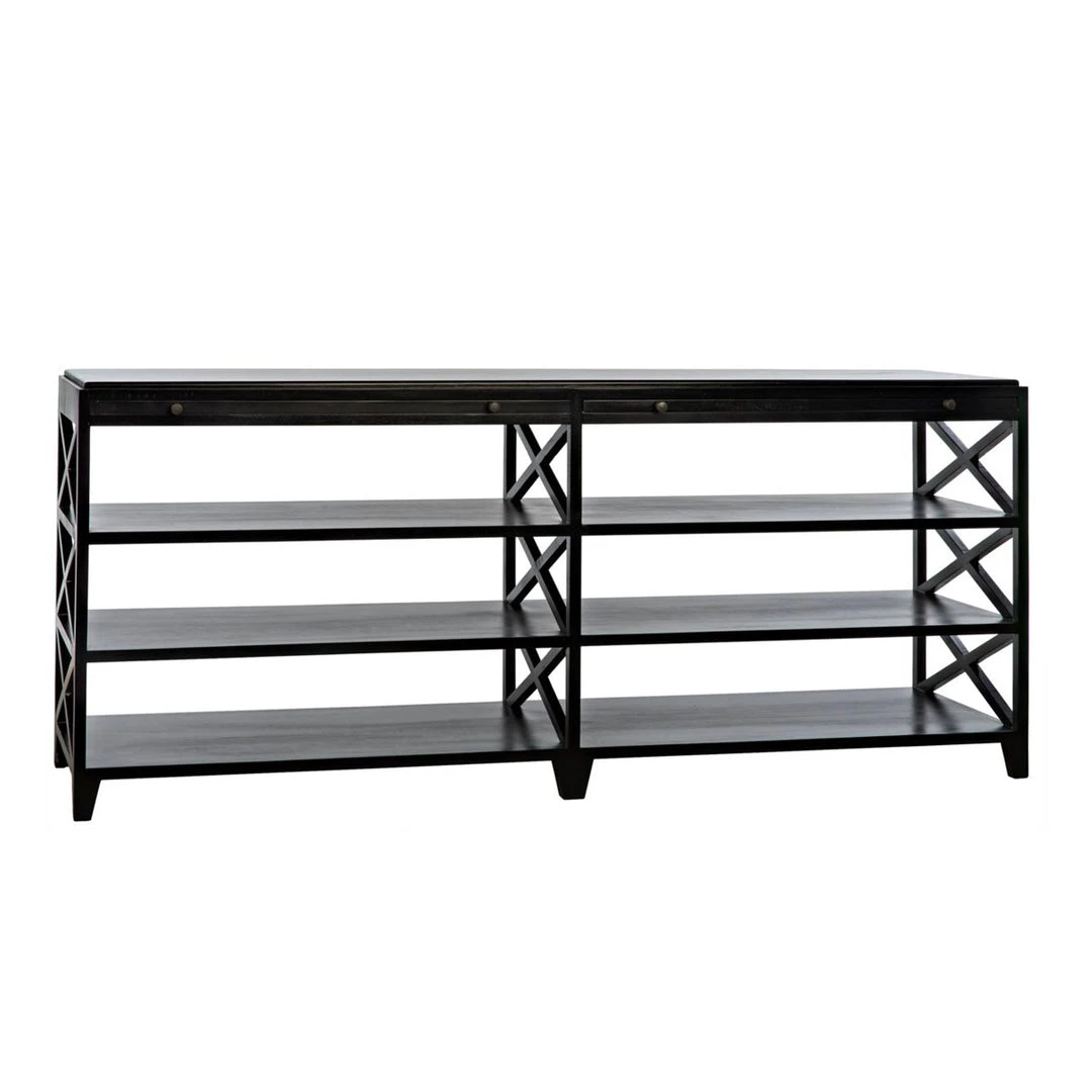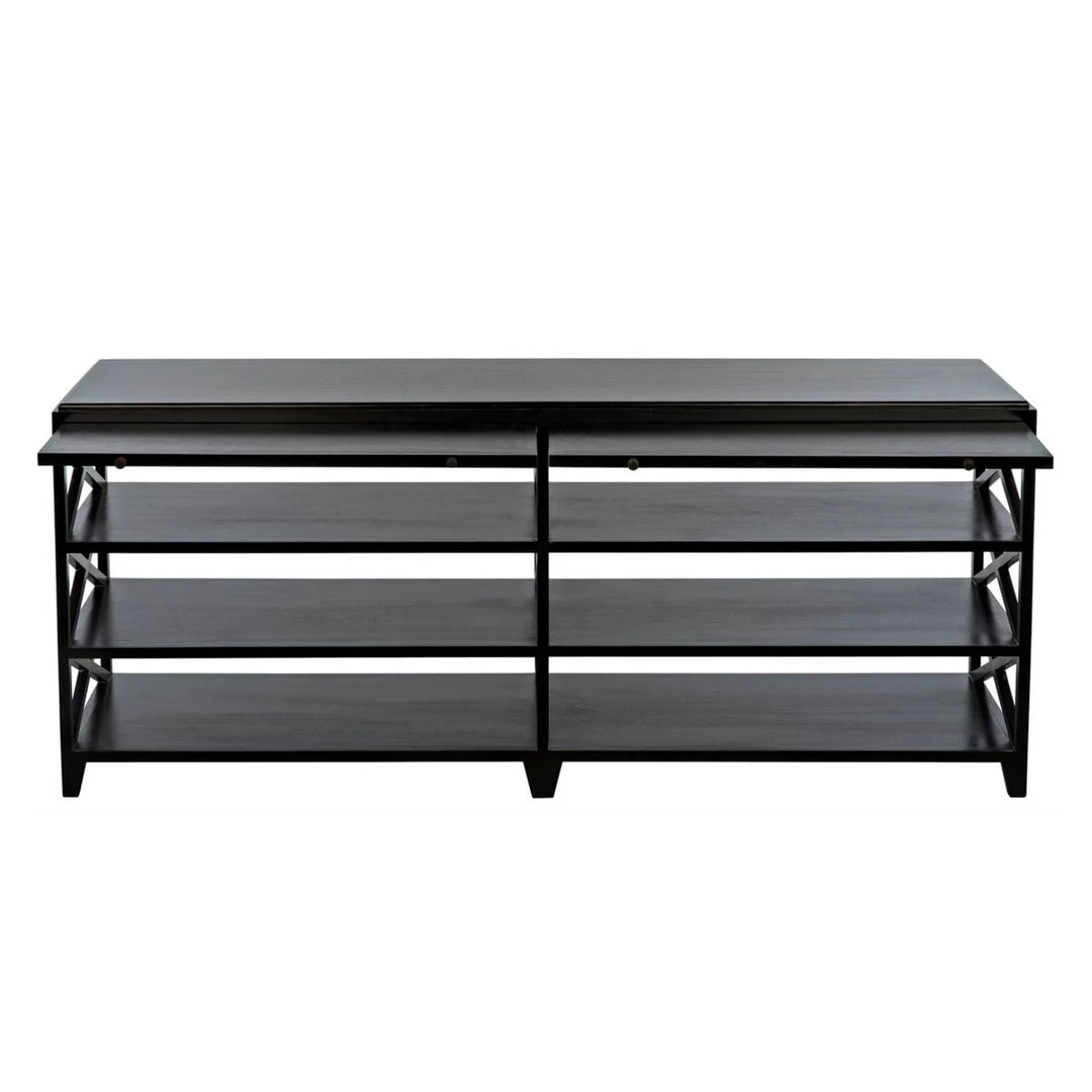 The Batumi Console Table is a sleek furniture piece with ample amounts of open storage. Combining black mahogany with angled details to create a sharp, yet balanced addition to your space.