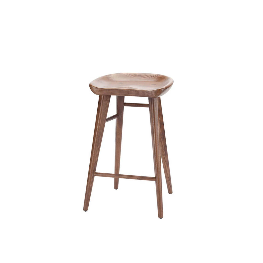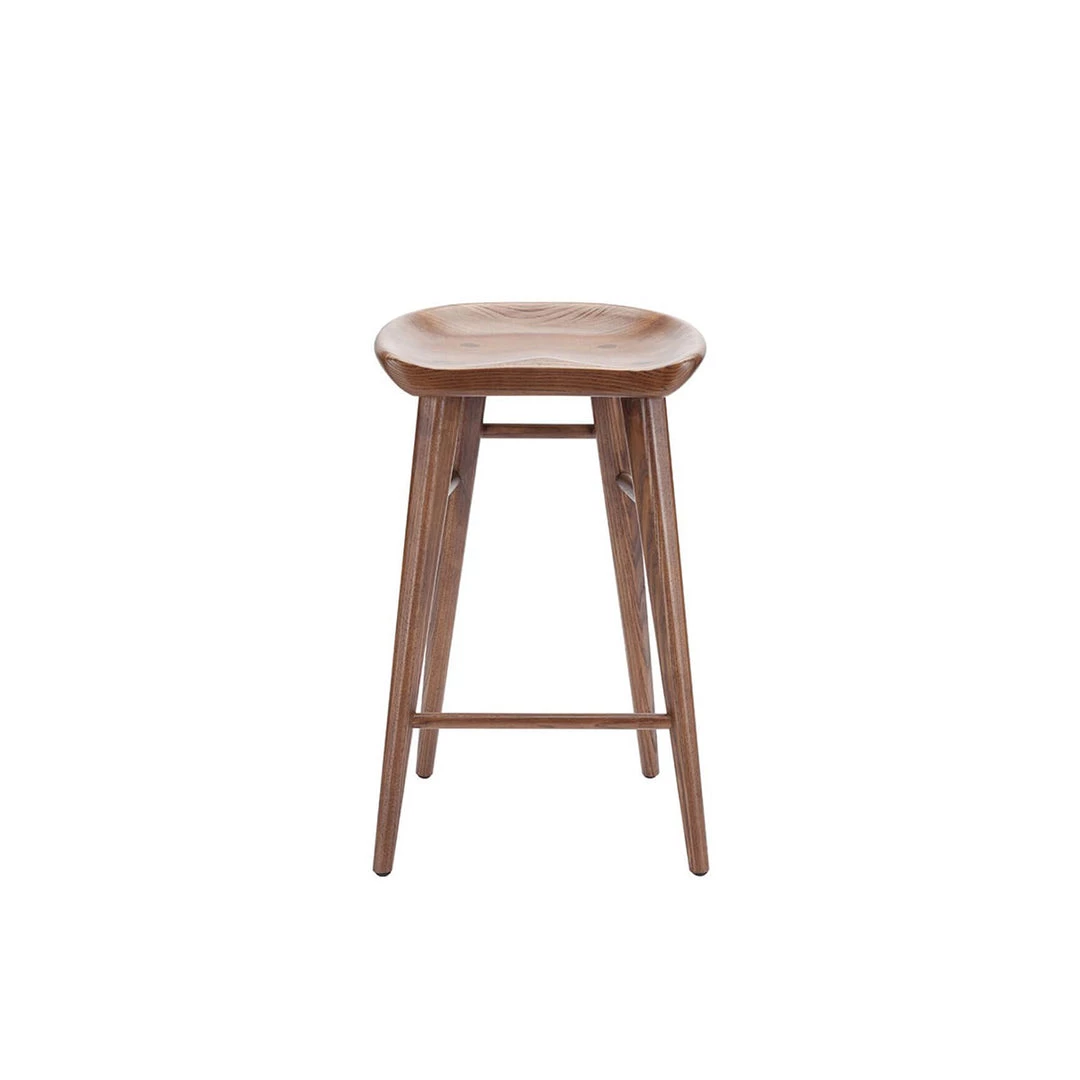 The Camrose Counter Stool is simple, elegant and classic without sacrificing comfort. The solid wood design has a distinct style with an elegantly curved seat and long straight legs. The four triangular legs are reinforced with cross bracing that also acts as a footrest.