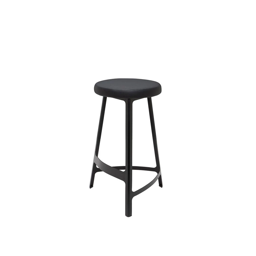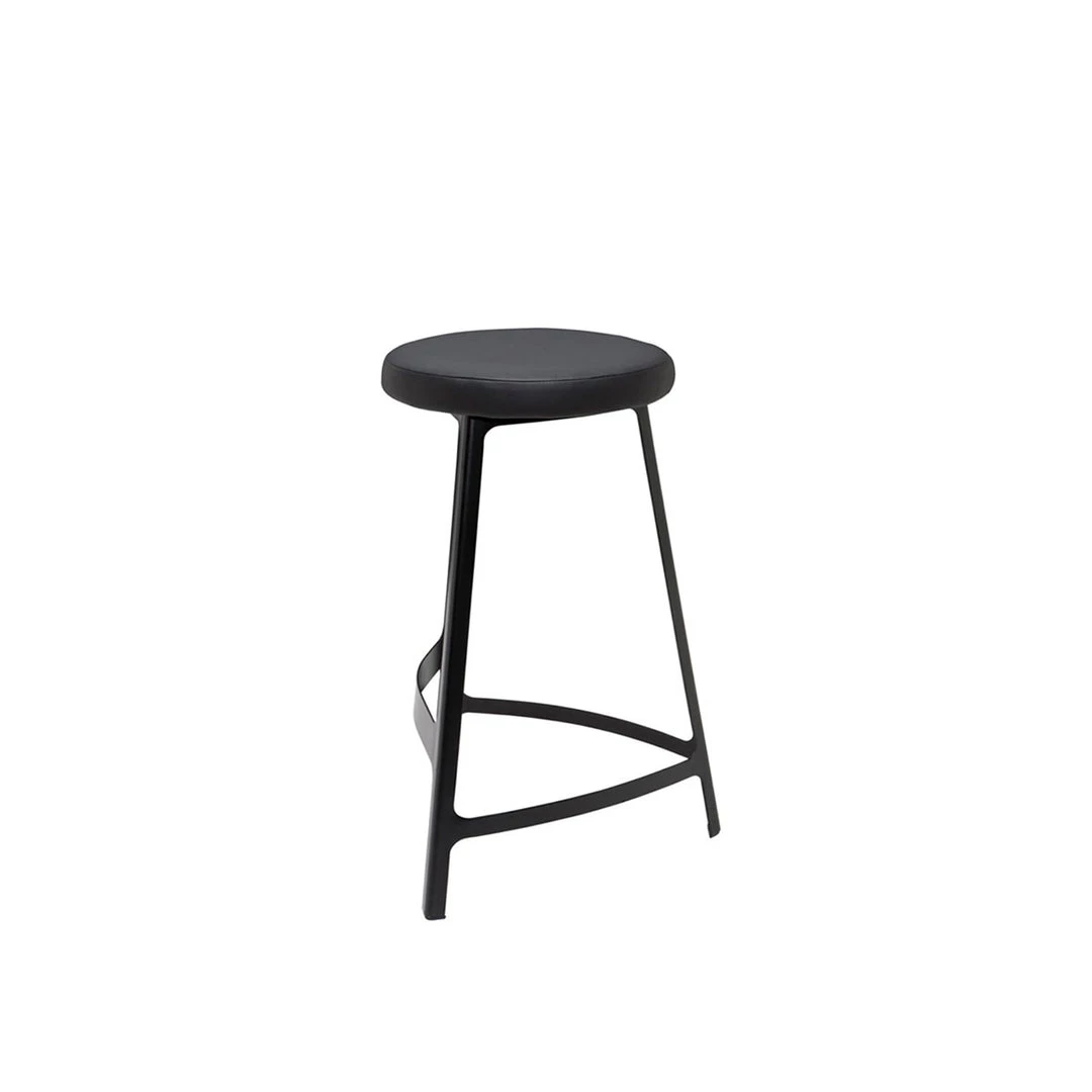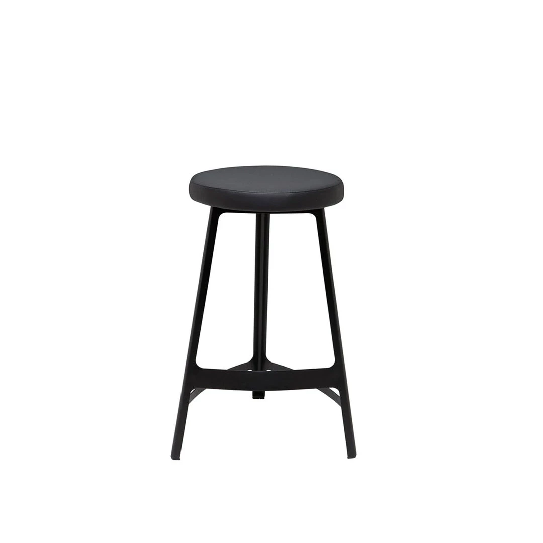 The Naha Counter Stool is a classic stool with an urban aesthetic. The steel frame with slightly curved lines is finished with a powder coating and finely stitched faux leather seat.