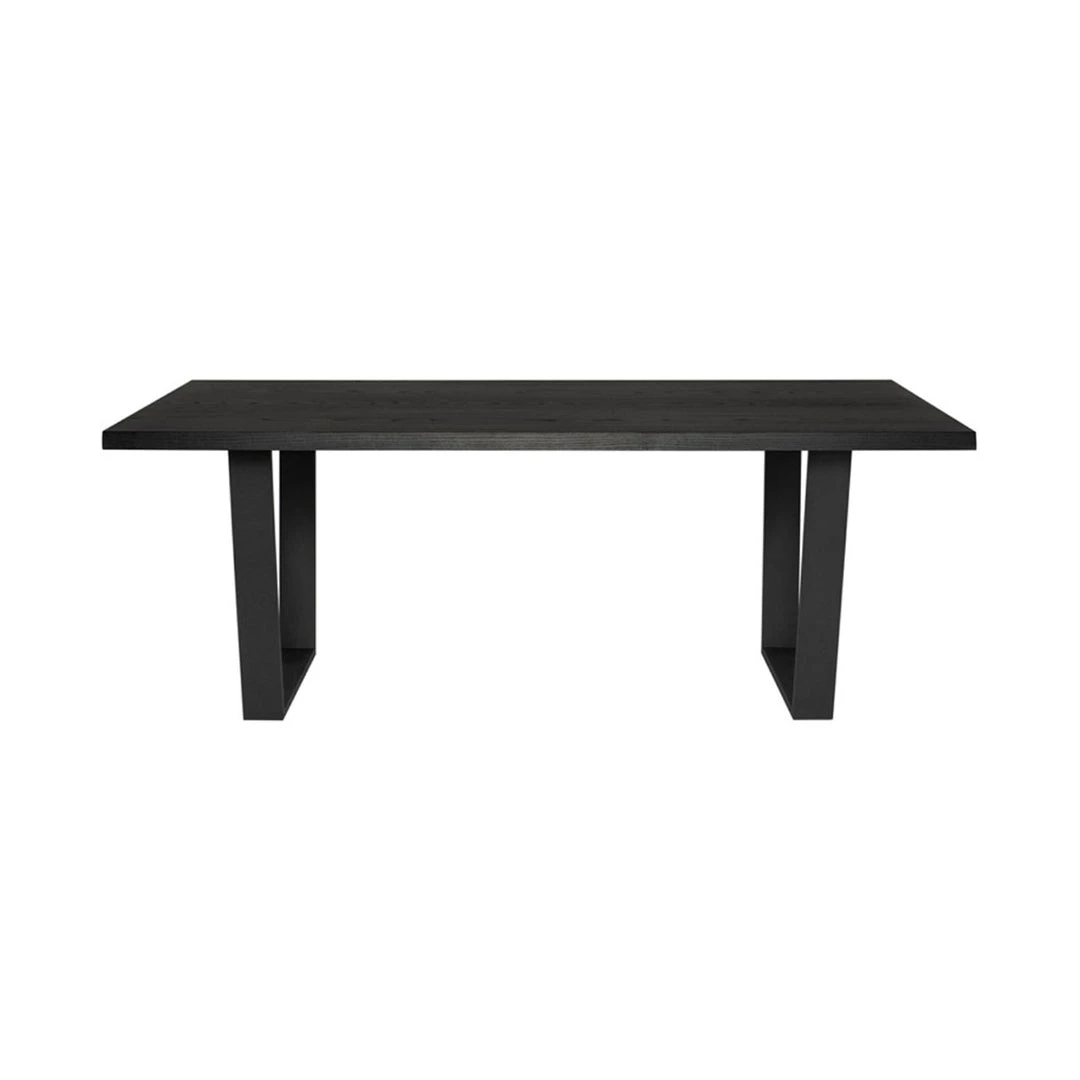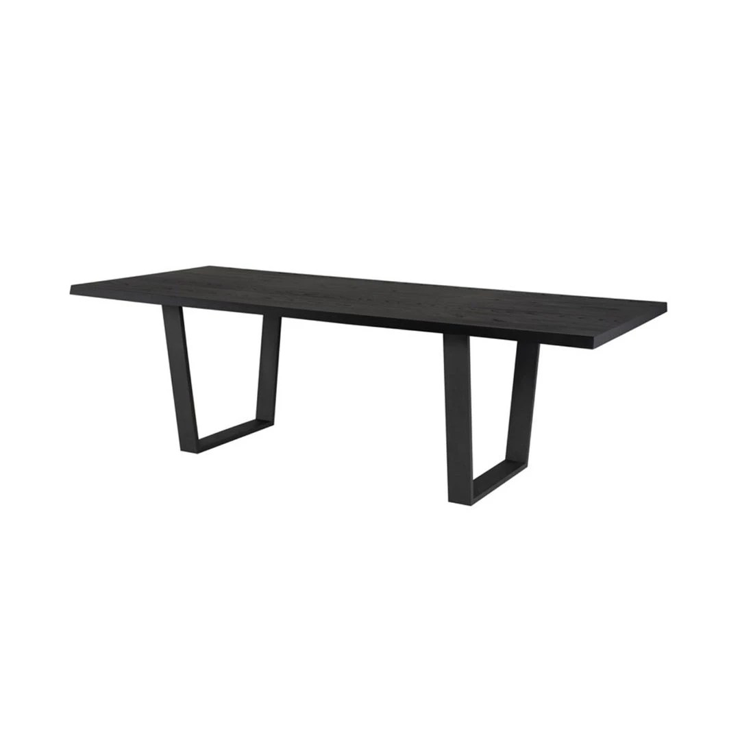 The Laval Dining Table offers a contemporary aesthetic to your dining room. Combining the rich texture of an oak wood tabletop finished in black onyx with the fine lines of steel legs.
