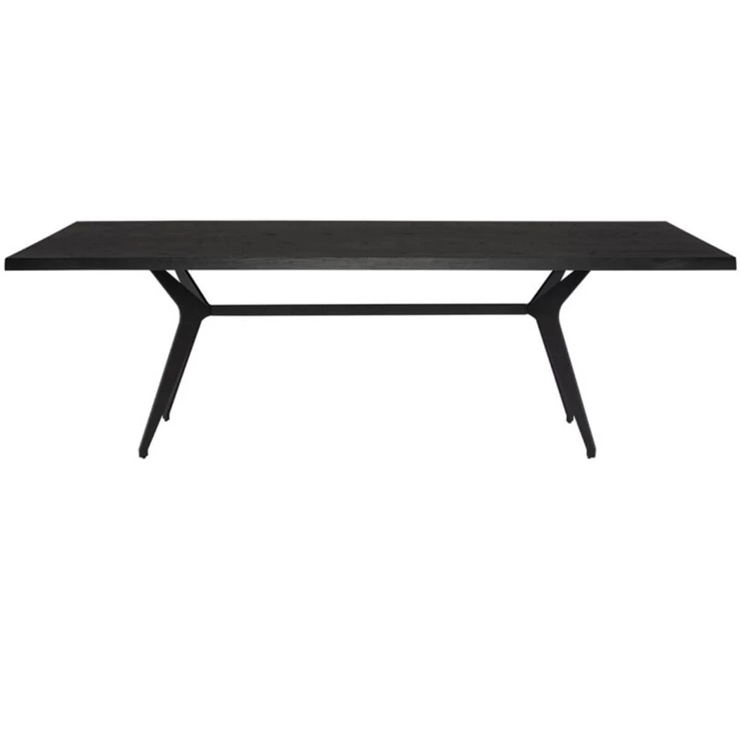 The Saratov Dining Table is perfect for a modern space with its sleek and refined style. The matte black steel legs on a slight angle to draw attention upwards towards the industrial drop-base and black onyx top. Contemporary dining at its finest.