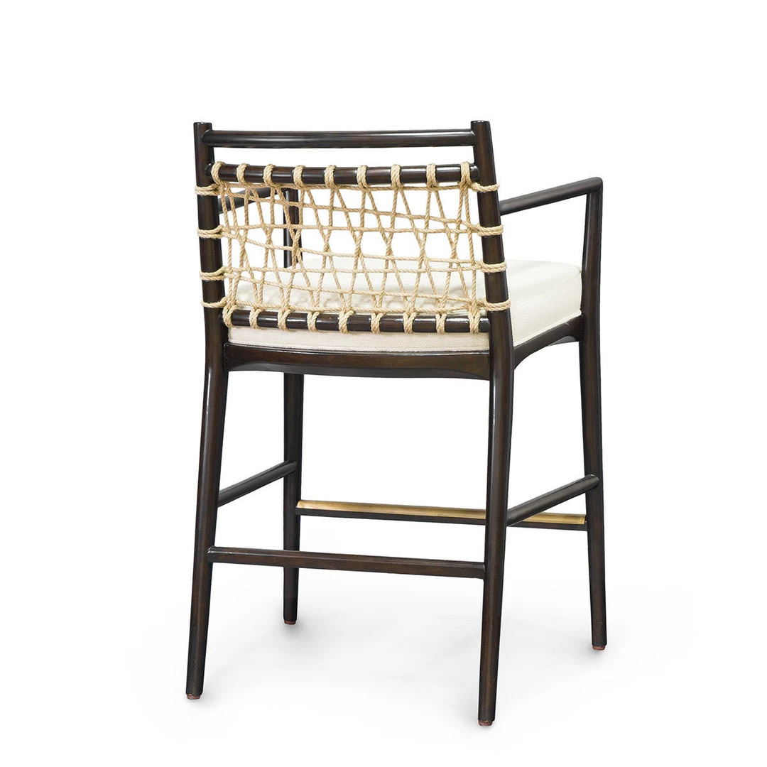 With its open-weave jute roped back, the Navan Counter Stool brings an organic feel to a modern silhouette. Made of plantation hardwood frame in dark espresso, it is accented with a brass finished footrest. The Navan Counter Stool delivers a balance of comfort, luxury and texture to your interior space.Â