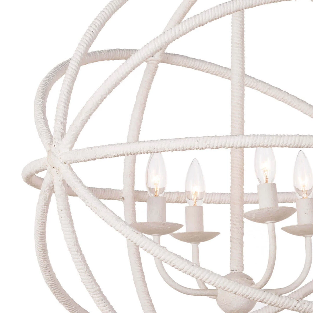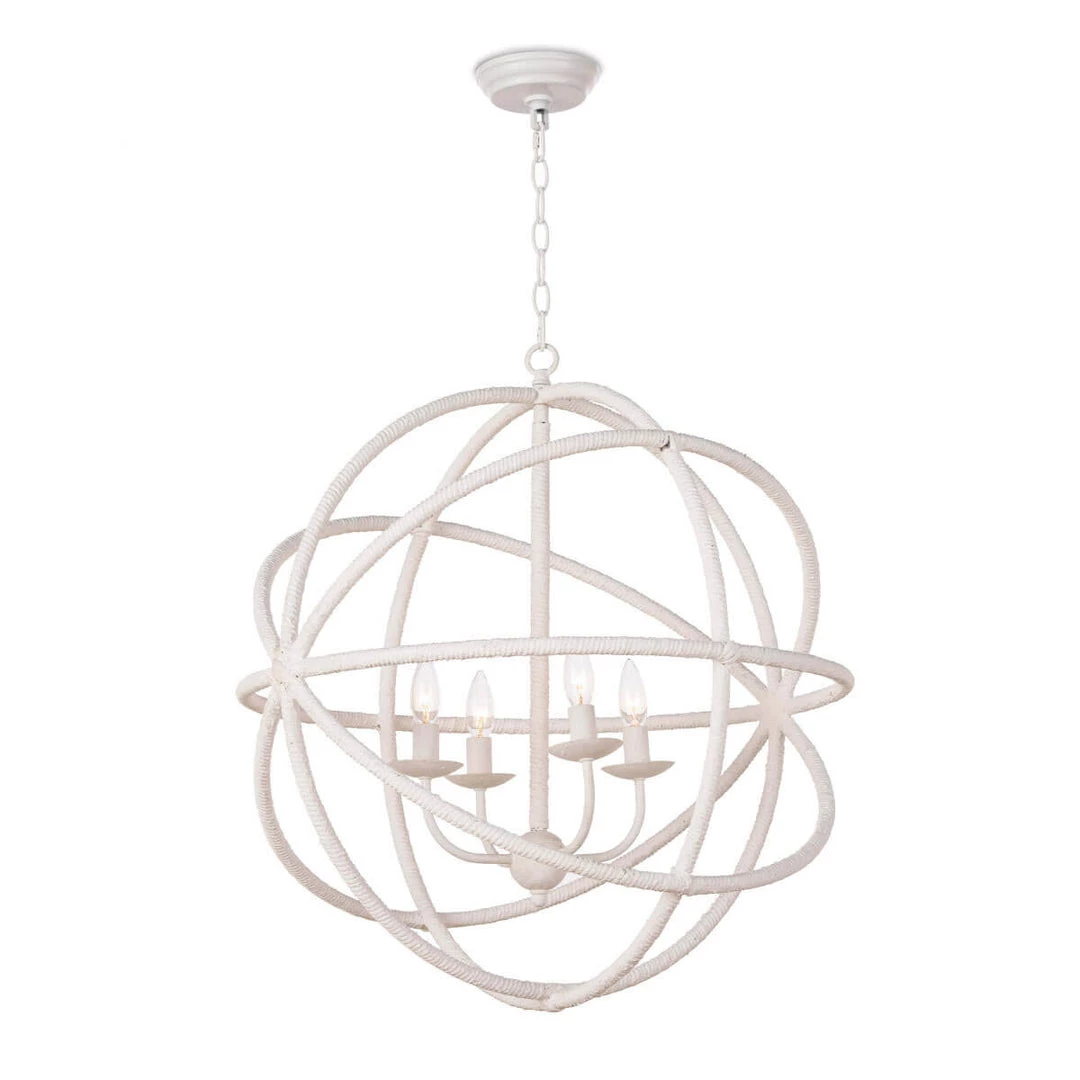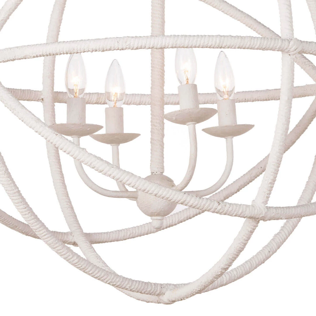 The Stockholm Chandelier is a light and airy, four-light fixture ready to give a nautical nod to your space. The rope look is created in steel, coated with a soft white finish.