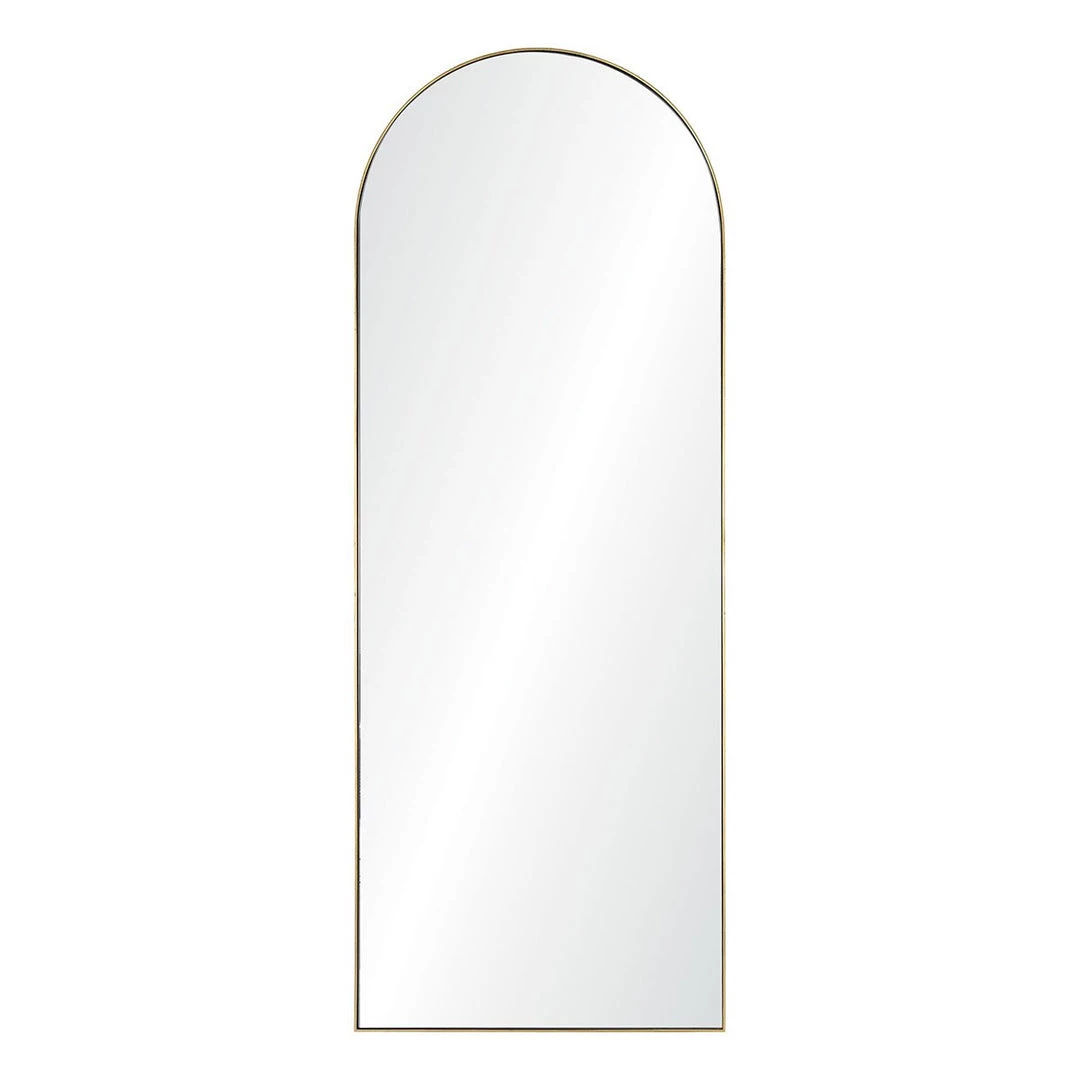 The Arch Mirror is a full-length mirror, finished in a gold leaf tone. The thin iron frame reaches high, extending into a soft arched curve. Incorporate this arched crown top mirror in your home to visually open up a space or elongate a hallway.