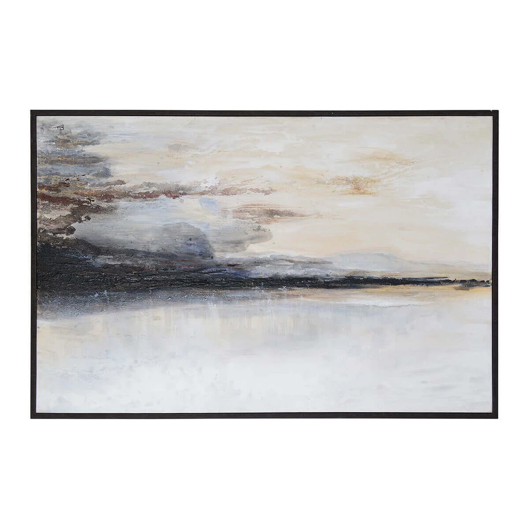 The Warran is hand-painted on canvas and framed in black timber. The texture created during the artistic process will heighten your art wall and add interest to your space.