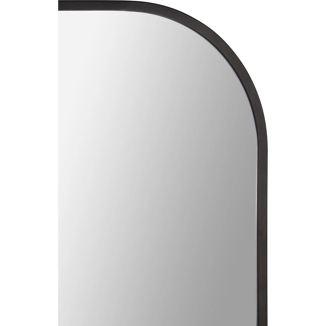 The Daphine Mirror is modern and sleek with rounded top corners. The thin iron frame in a powder-coated black finish adds depth to your living room above your stylish sideboard.