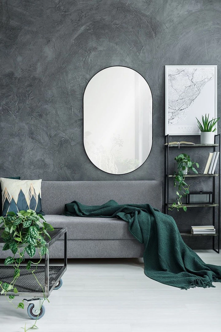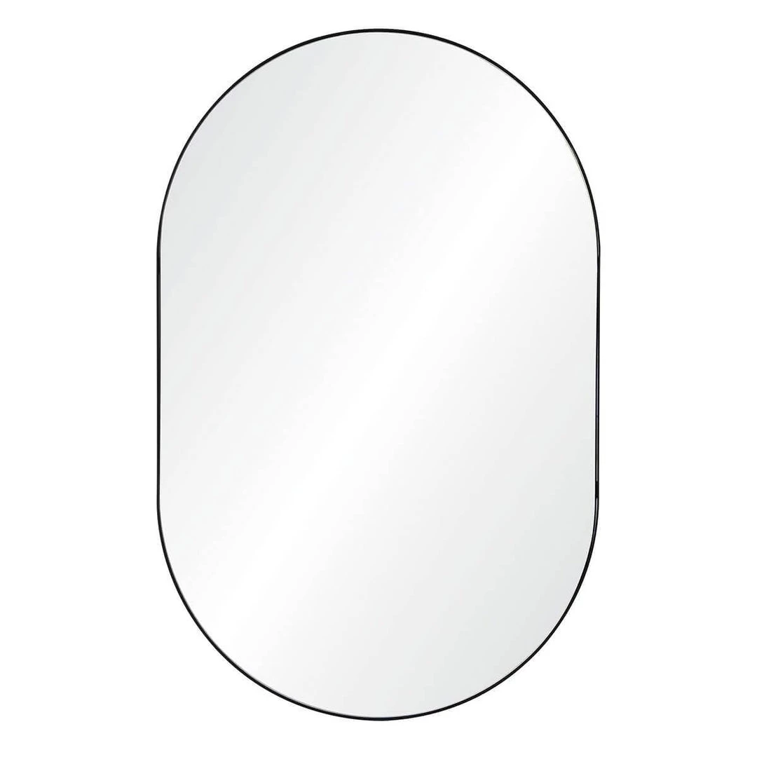 The Draper Mirror features a thin iron frame around its oblong shape. The black powder-coated finish gives the Draper a versatile tone, easily integrated into your decor. This mirror is suitable for humid areas and works well above your bathroom vanity.