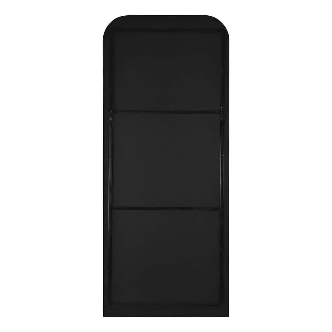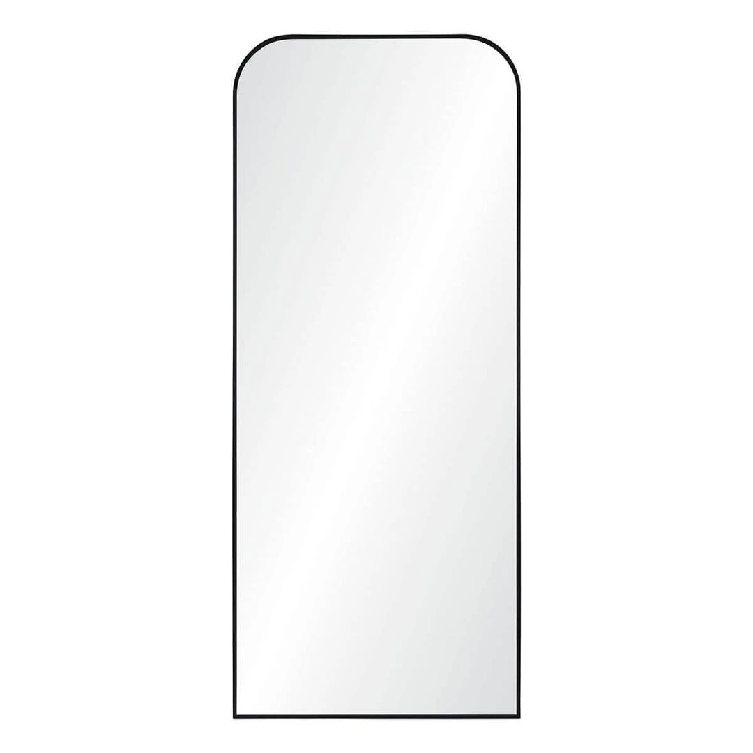The Mandolin Mirror is a striking full-length mirror. The slender iron frame finished in a black powder-coated tone is easily incorporated into your interior decor. The tall mirror with rounded top corners can be added to any room to open up the space and add depth to your walls.