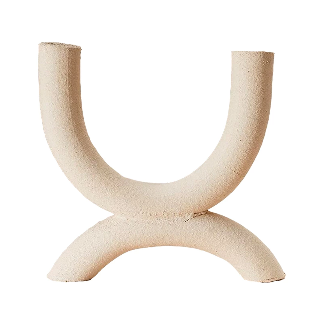 The Dessaint Candle Holder has a beautifully elegant and abstract look with its curved shape for two candles. Made out of raw ceramic in a raw blanc finish, this is perfect for holding candles in any contemporary or modern living space.Â