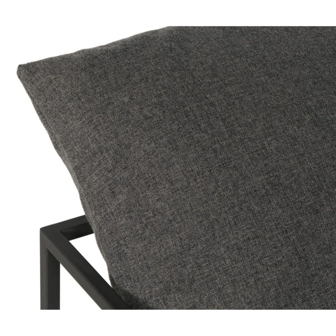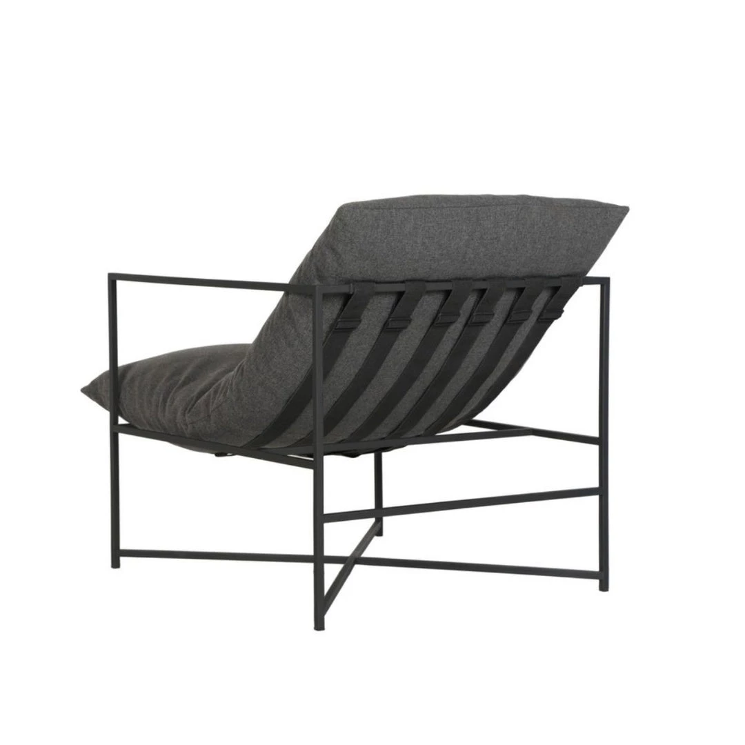 The Lochwinnoch Lounge Chair elevates relaxing moments in both indoor and outdoor spaces. This contemporary armchair features a black power coated aluminum frame, contrasted with a thick mesh cushion in a durable charcoal fabric.