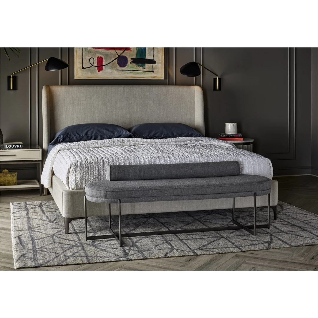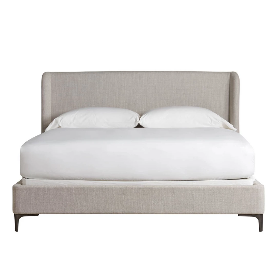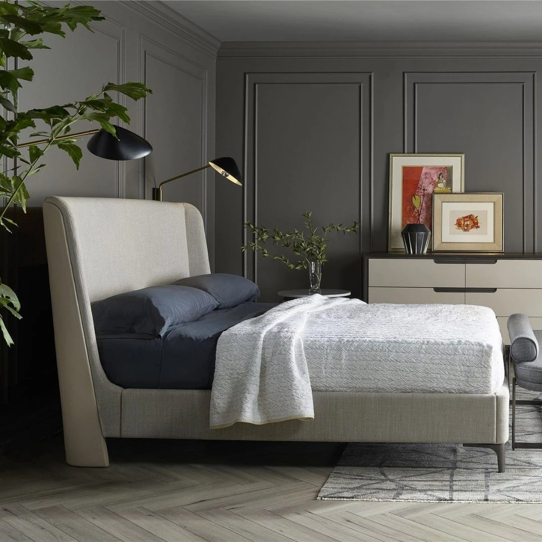The Brondby King size Bed is luxury in a low-profile silhouette. Inspired by modern Italian designs, this upholstered bed feels both substantial and plush. Clean lines and rounded headboard features vegan leather details that bring a hint of drama and comfort to your bedroom.