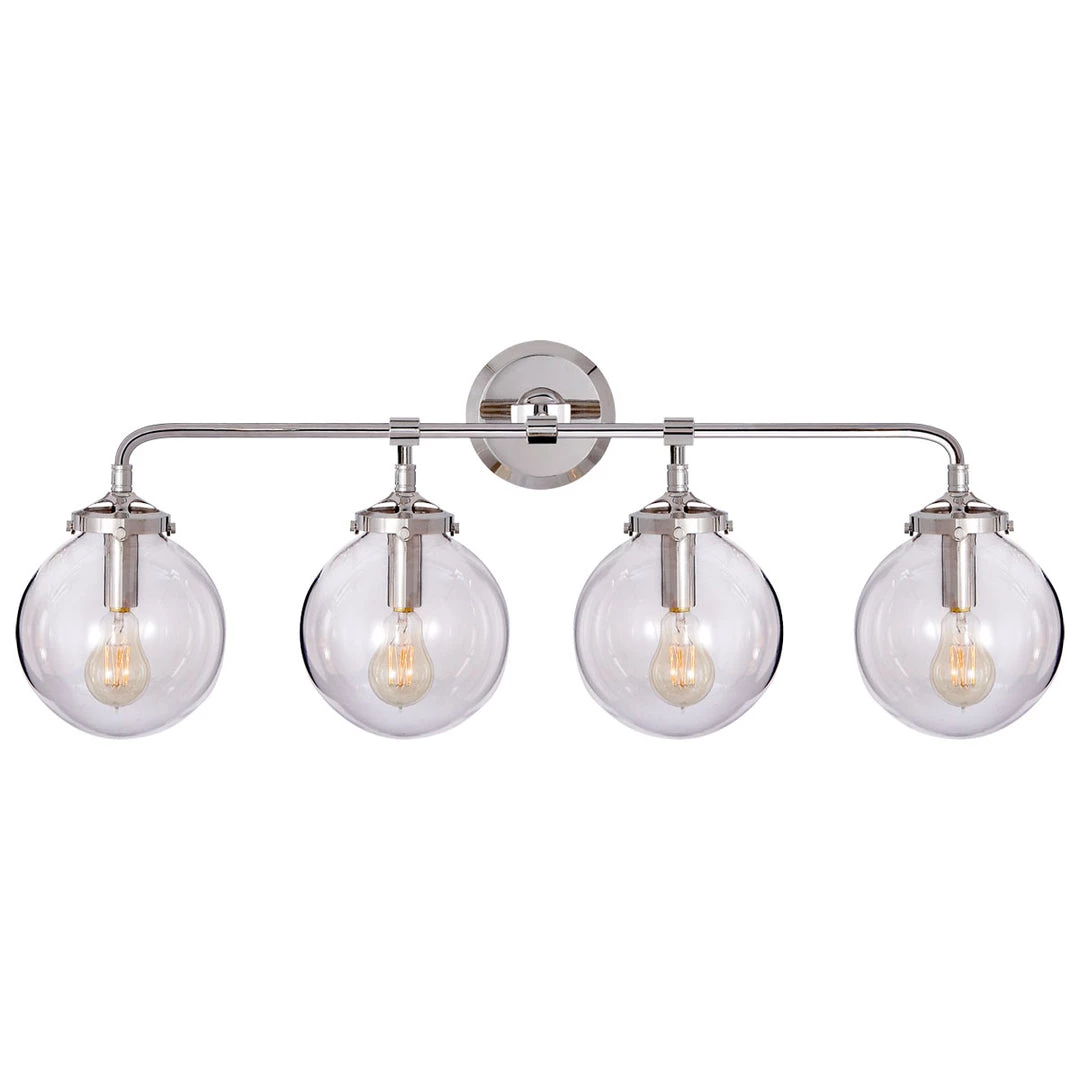 The Bistro Sconce will add a bold statment to any bathroom with its sleek finishes and and simple silhouette. The 4-light sconce will sit perfectly above your bathroom vanity.