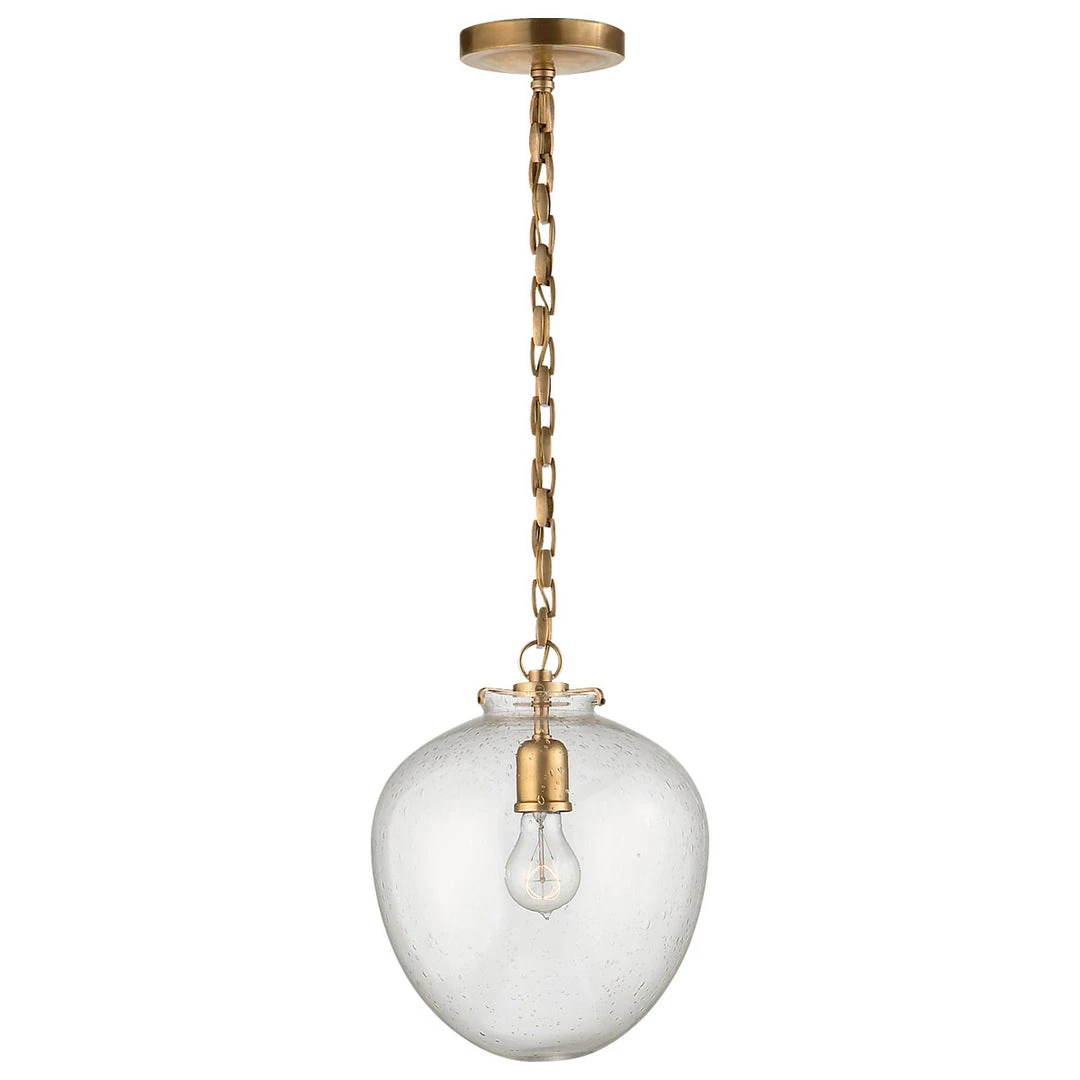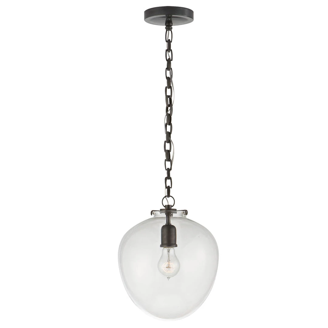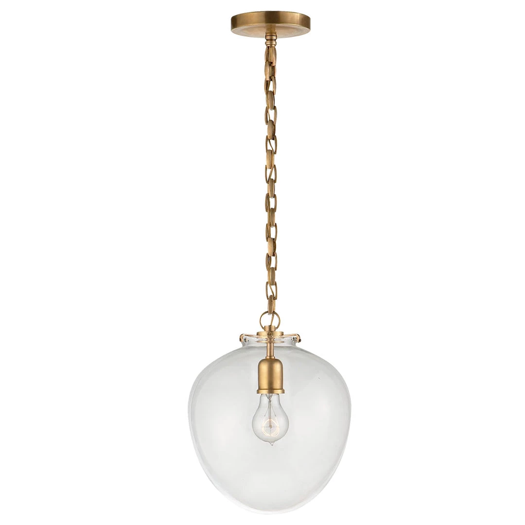The Katie Acorn Pendant features a beautiful glass acorn shaped globe suspended by a simple chain. It comes in a variety of glasses and metals to choose from to fit your interior space. The Katie Acorn Pendant would suit over a kitchen island, dining table or even in a bathroom.
