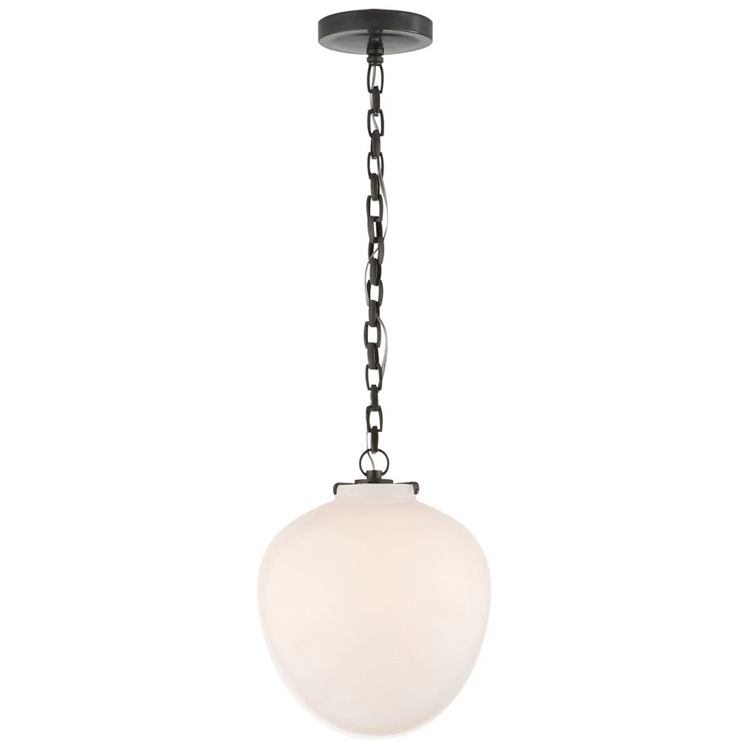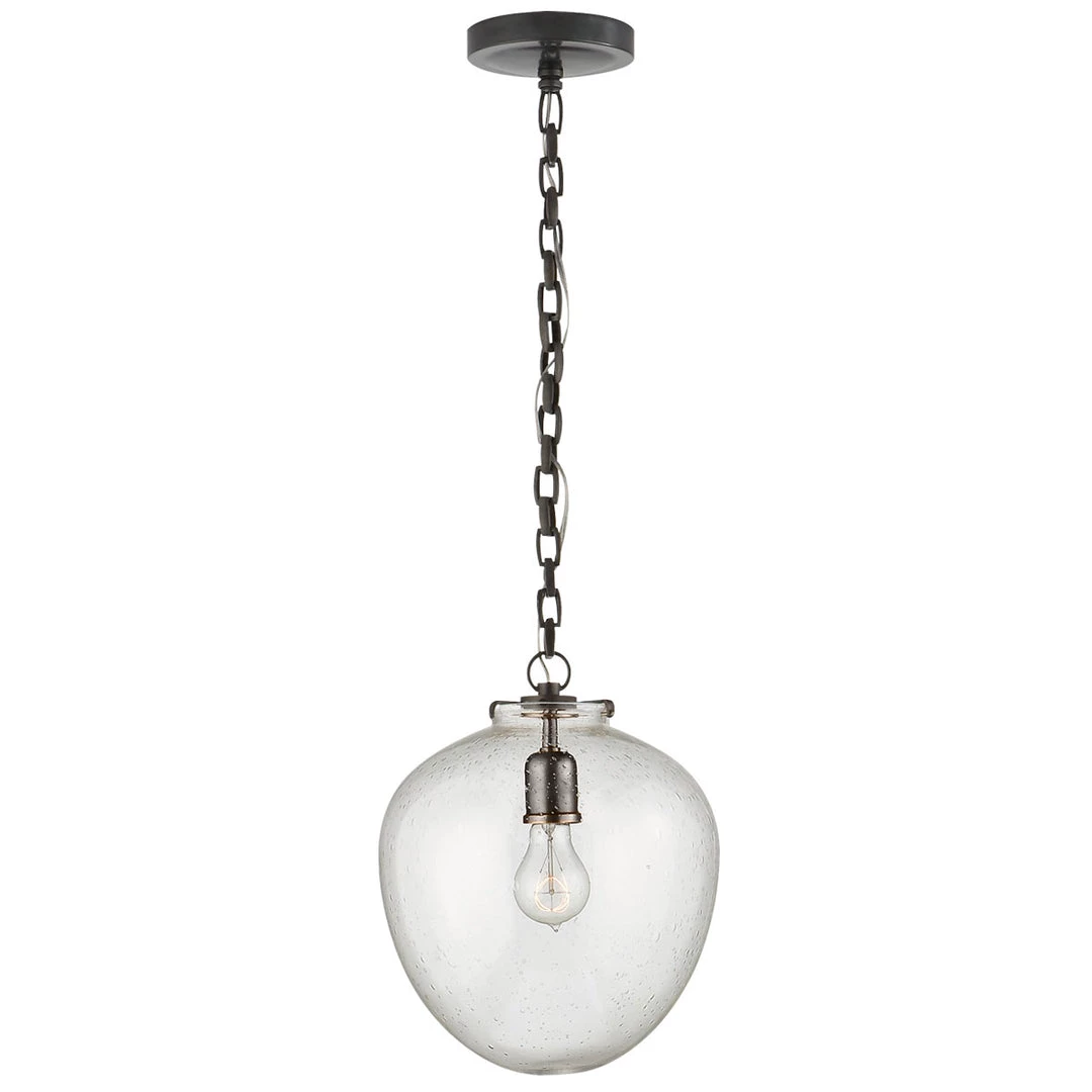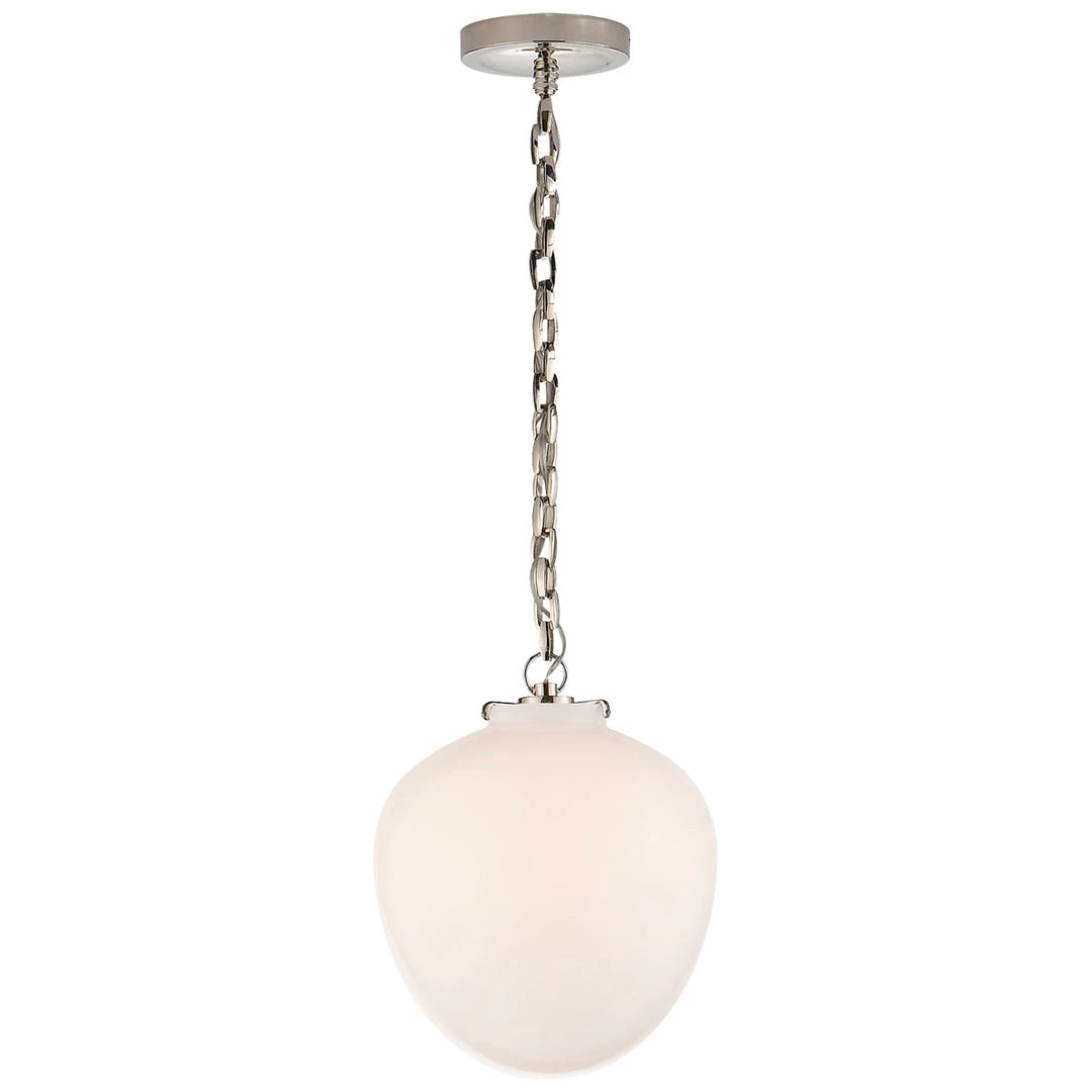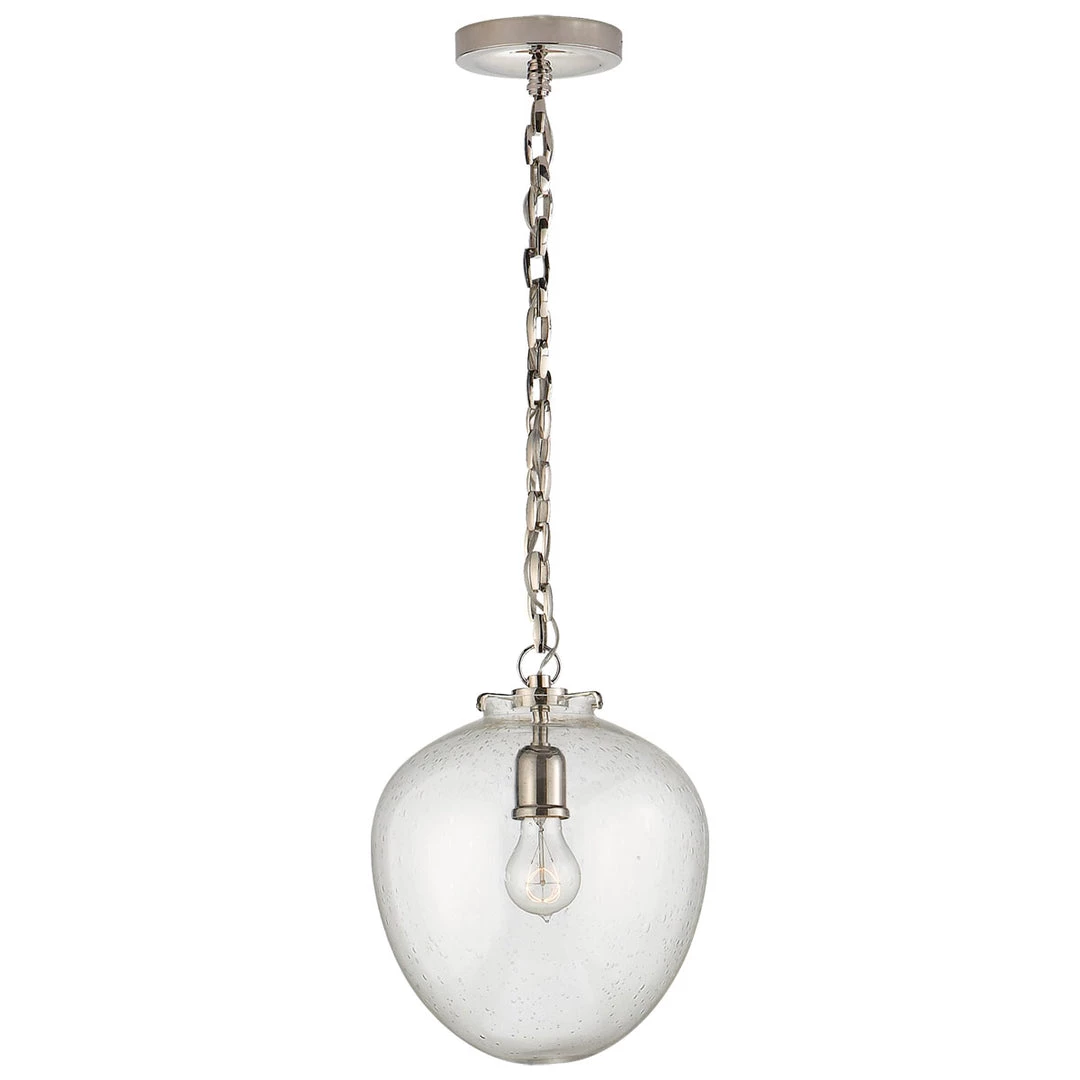 The Katie Acorn Pendant features a beautiful glass acorn shaped globe suspended by a simple chain. It comes in a variety of glasses and metals to choose from to fit your interior space. The Katie Acorn Pendant would suit over a kitchen island, dining table or even in a bathroom.