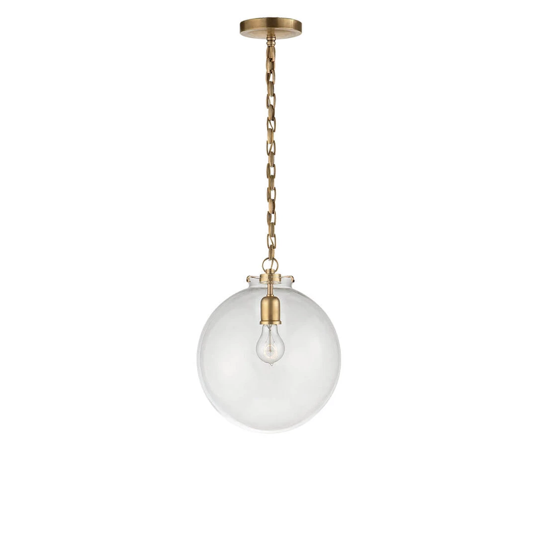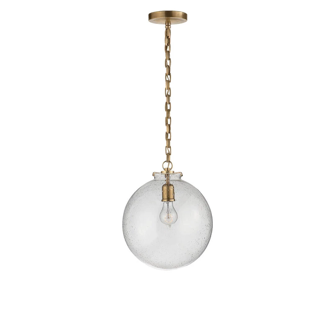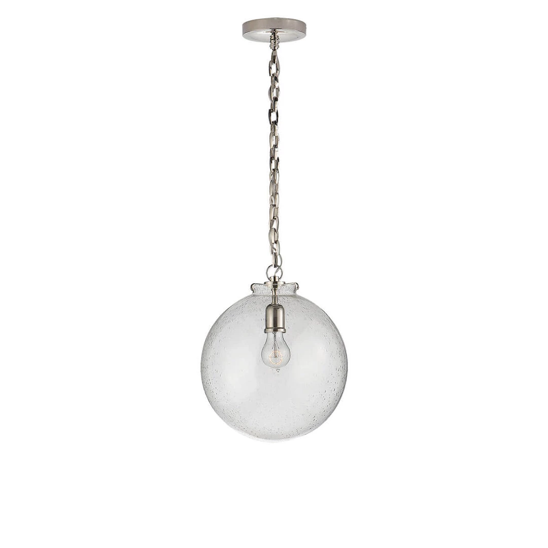 The Katie Globe Pendant is a classic glass globe ceiling light. Select from a variety of finishes and glass options.