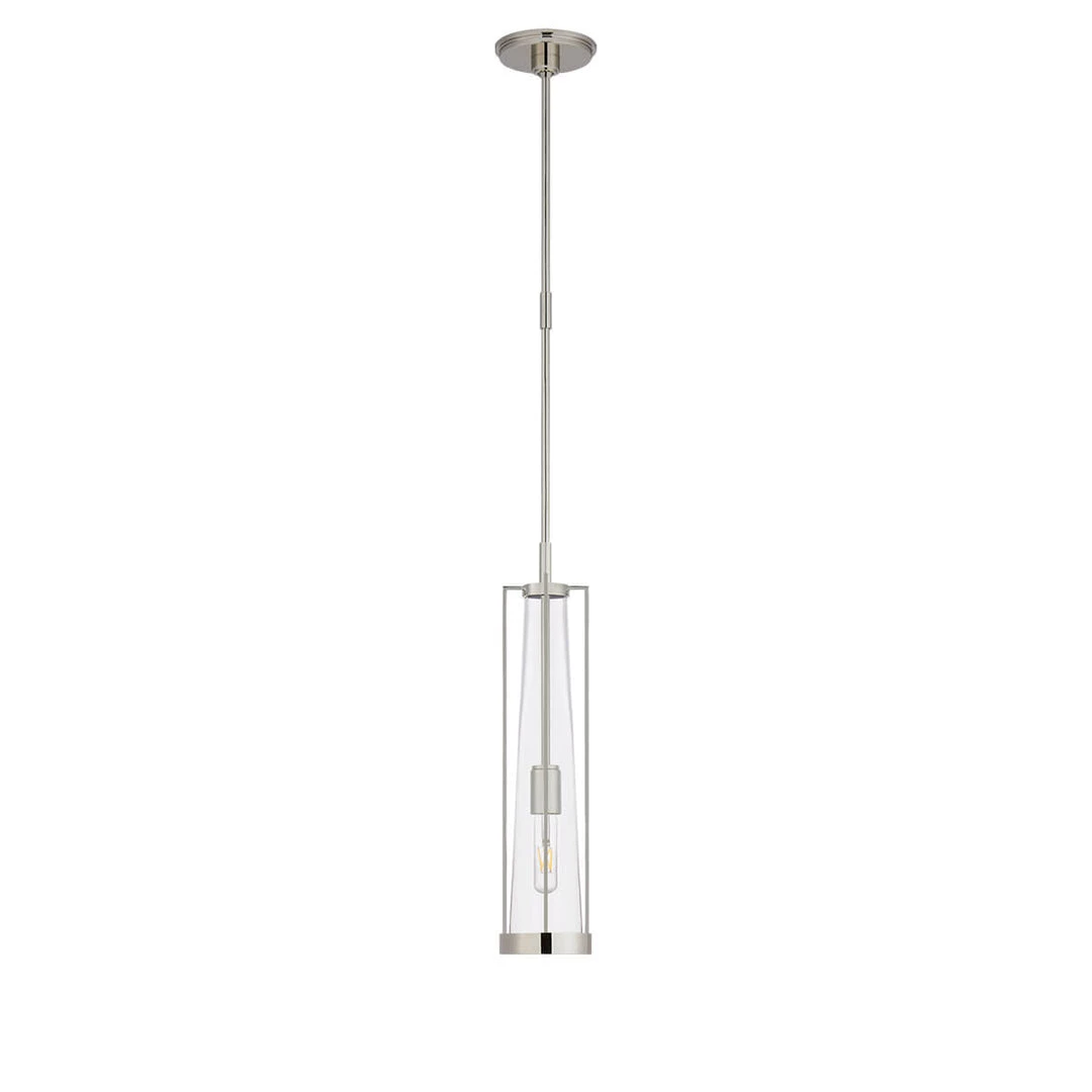 The Calix Tall Pendant is long and lean. The sleek ceiling light features a metal frame available in three different colours. All colours offers the shade in either clear glass or white glass.