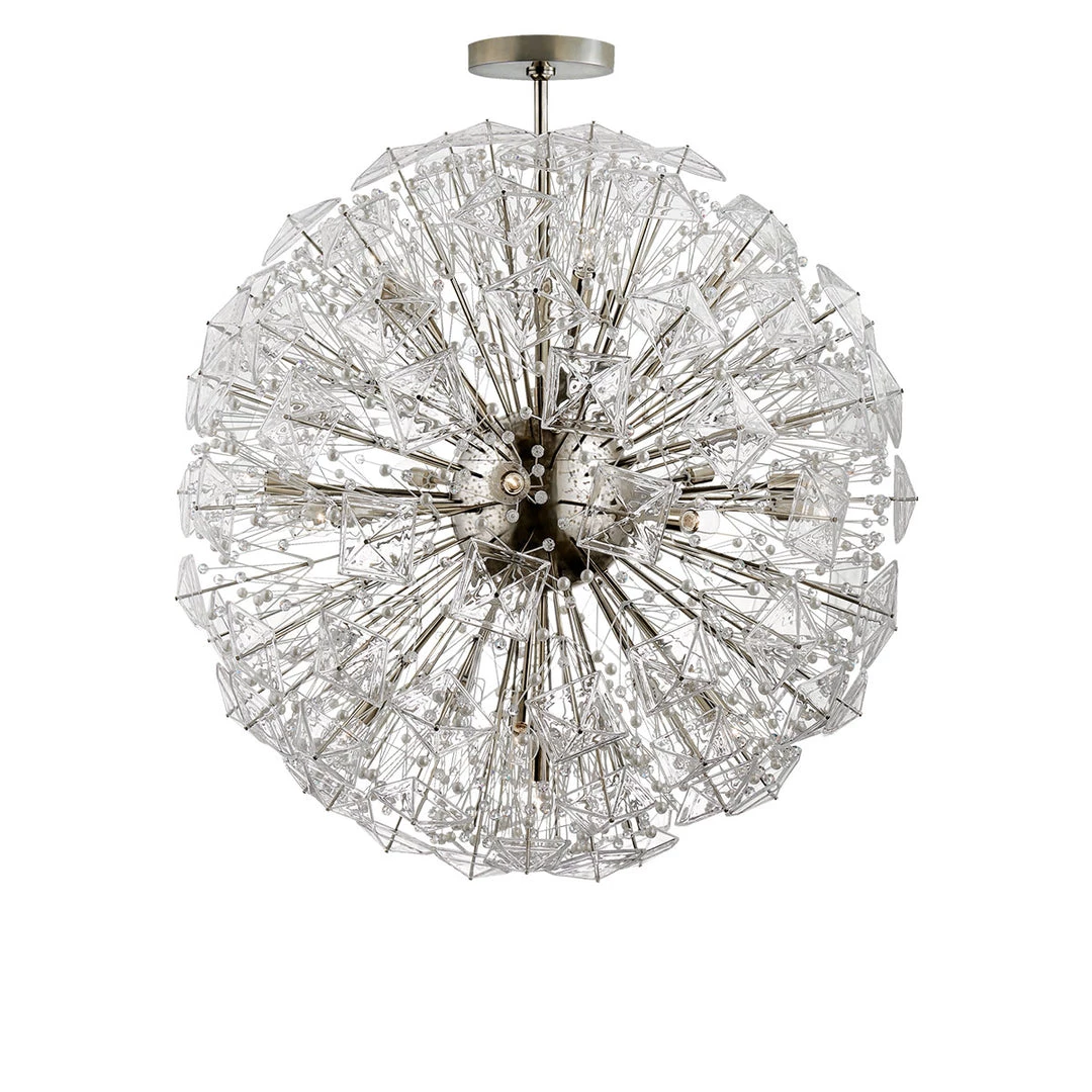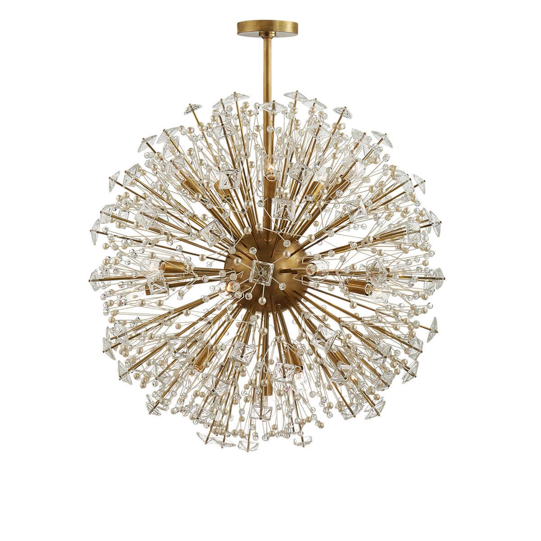 Wow! The Dickinson Large Chandelier is so incredible. The unique crystal chandelier is made up of clear glass, cream pearls and brass or polished nickel. A stunning unique light fixture to elevate your space and turn heads.