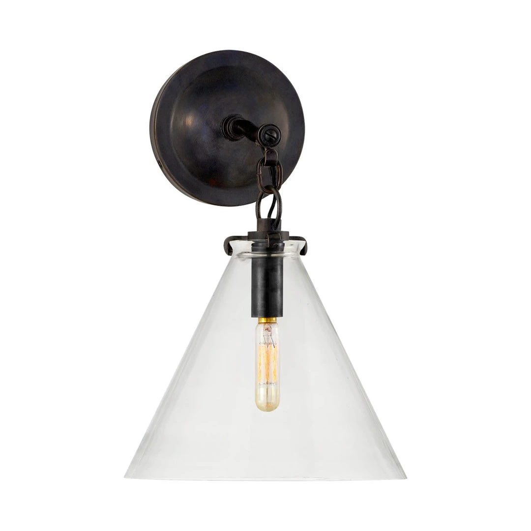 The Katie Conical Sconce comes in different metal finishes with clear glass that will bring a traditional yet modern feel to your interior space. A perfect touch of glam and to a classic silhouette.