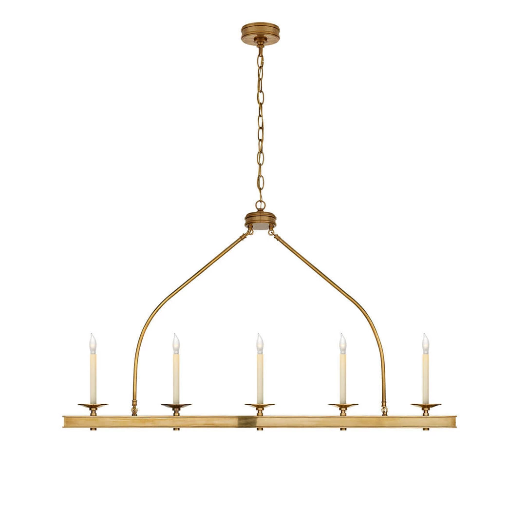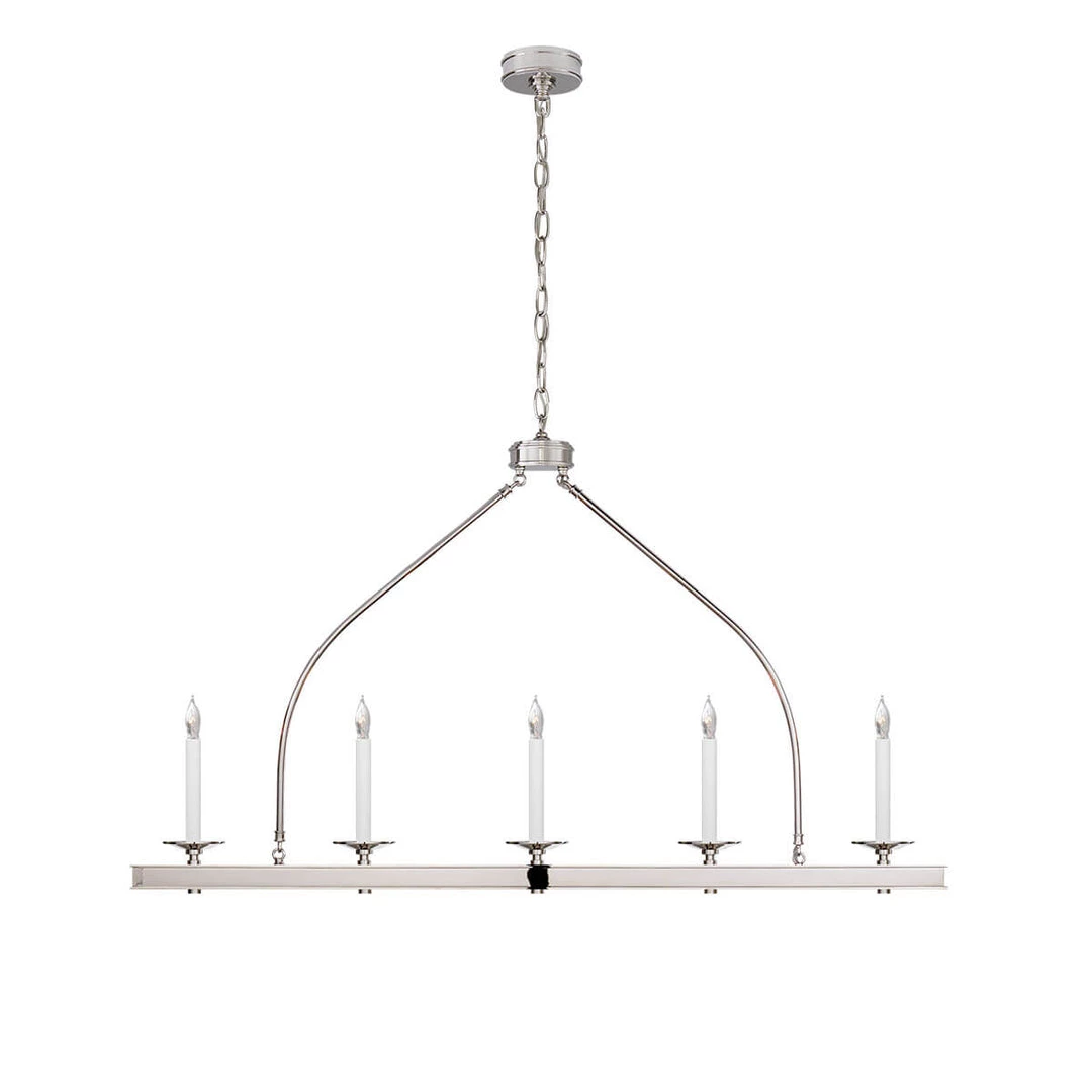 The Launceton Linear Chandelier ceiling light features five candle-like lights. Making an old idea new again with modern styling.