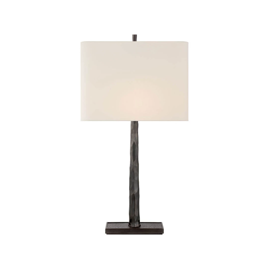 The Lyric Table Lamp is inspired by nature. The textured body of the Lyric adds visual appeal to your side table or nightstand and is softly finished with a rectangular linen shade.