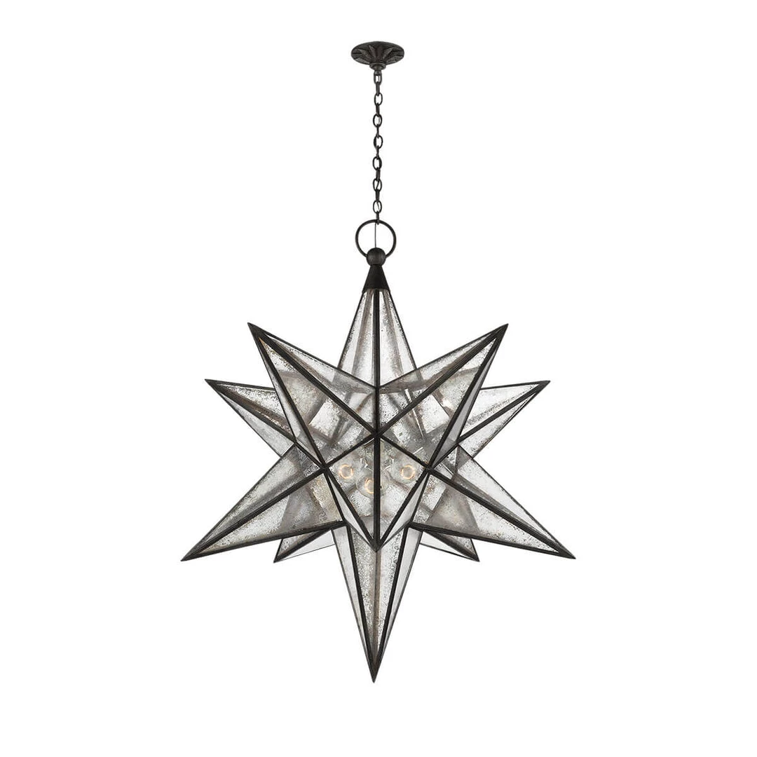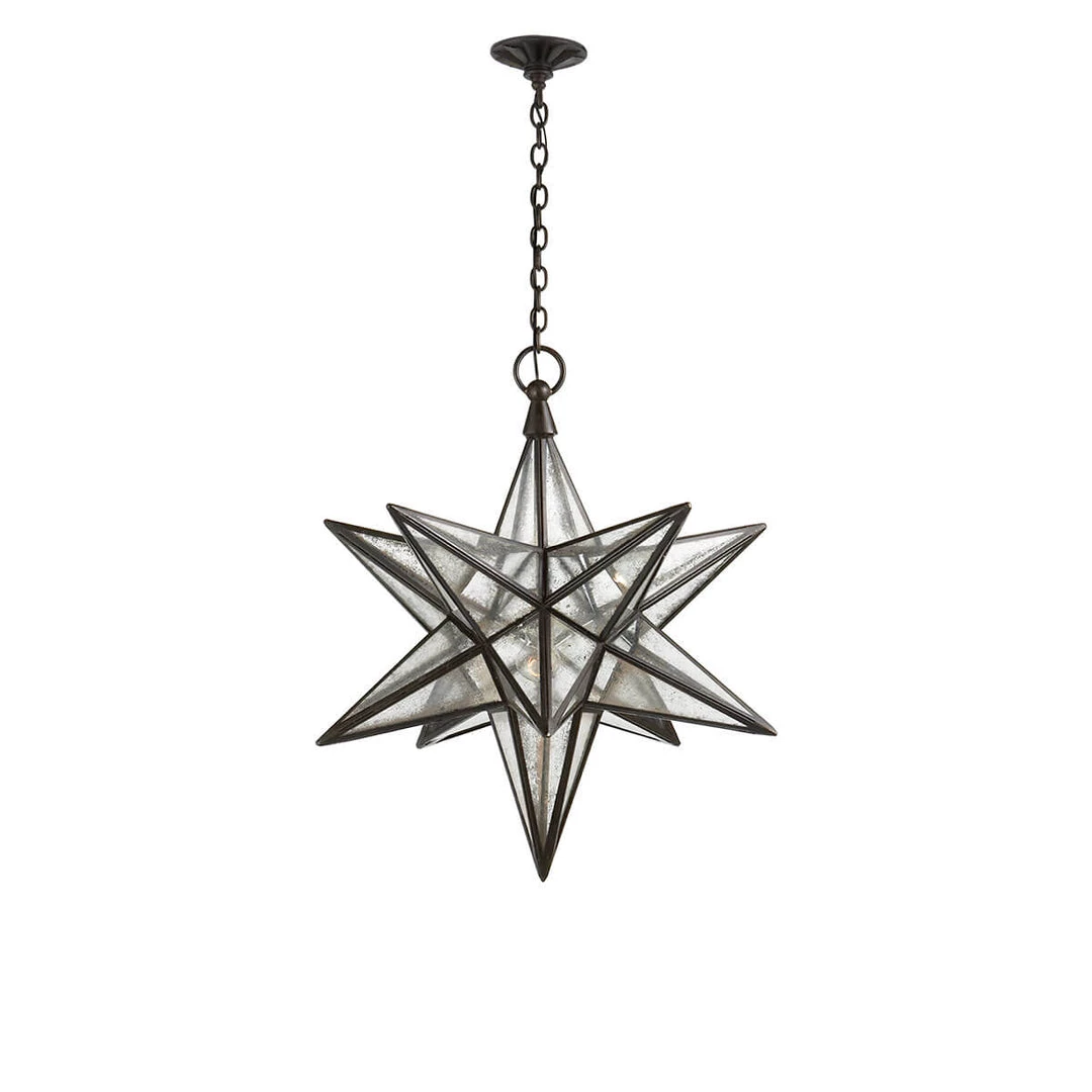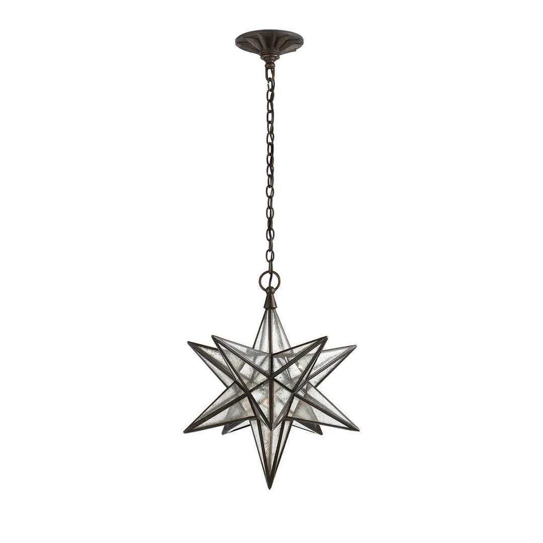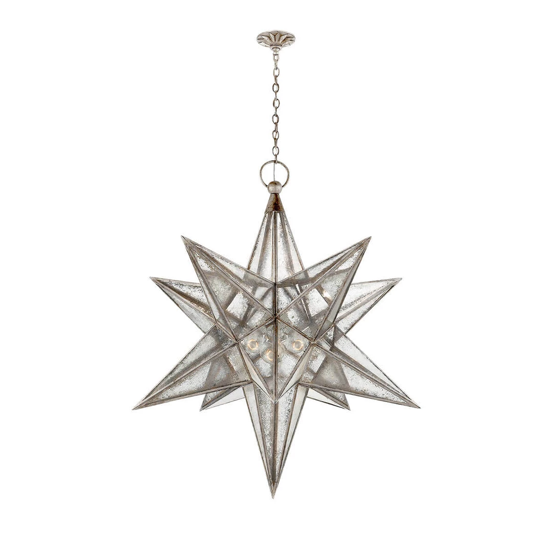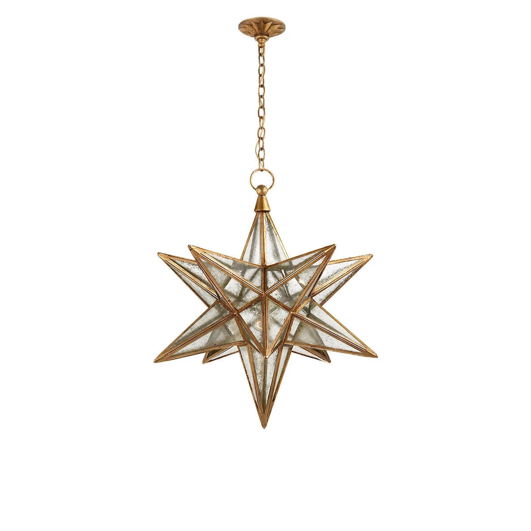 The Moravian Star Lantern is inspired from Moravian stars, which are a classic European figure since the 19th century. The pendant light is available in three beautiful finishes, paired with antique mirrored glass. We suggest installing the lanterns in a cluster and intermixing the available sizes.