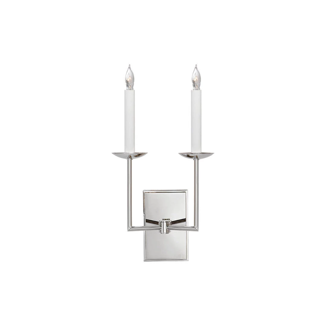 The Right Angle Double Wall Sconce is a right angle double sconce. A new take on a candelabra style light to illuminate your hallway, vanity or living room.