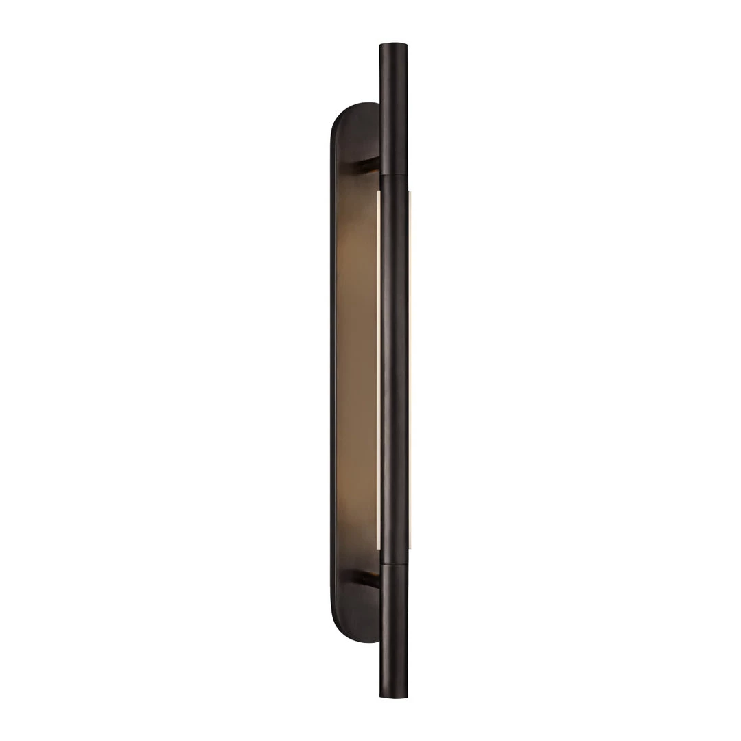 An excellent choice to light up your bathroom mirror, the Rousseau Bracketed Sconce features an a tubular light that reflects off the backplate. This sconce an be placed vertical or horizontal. Chose between polished nickel, hand-rubbed antique brass or bronze.