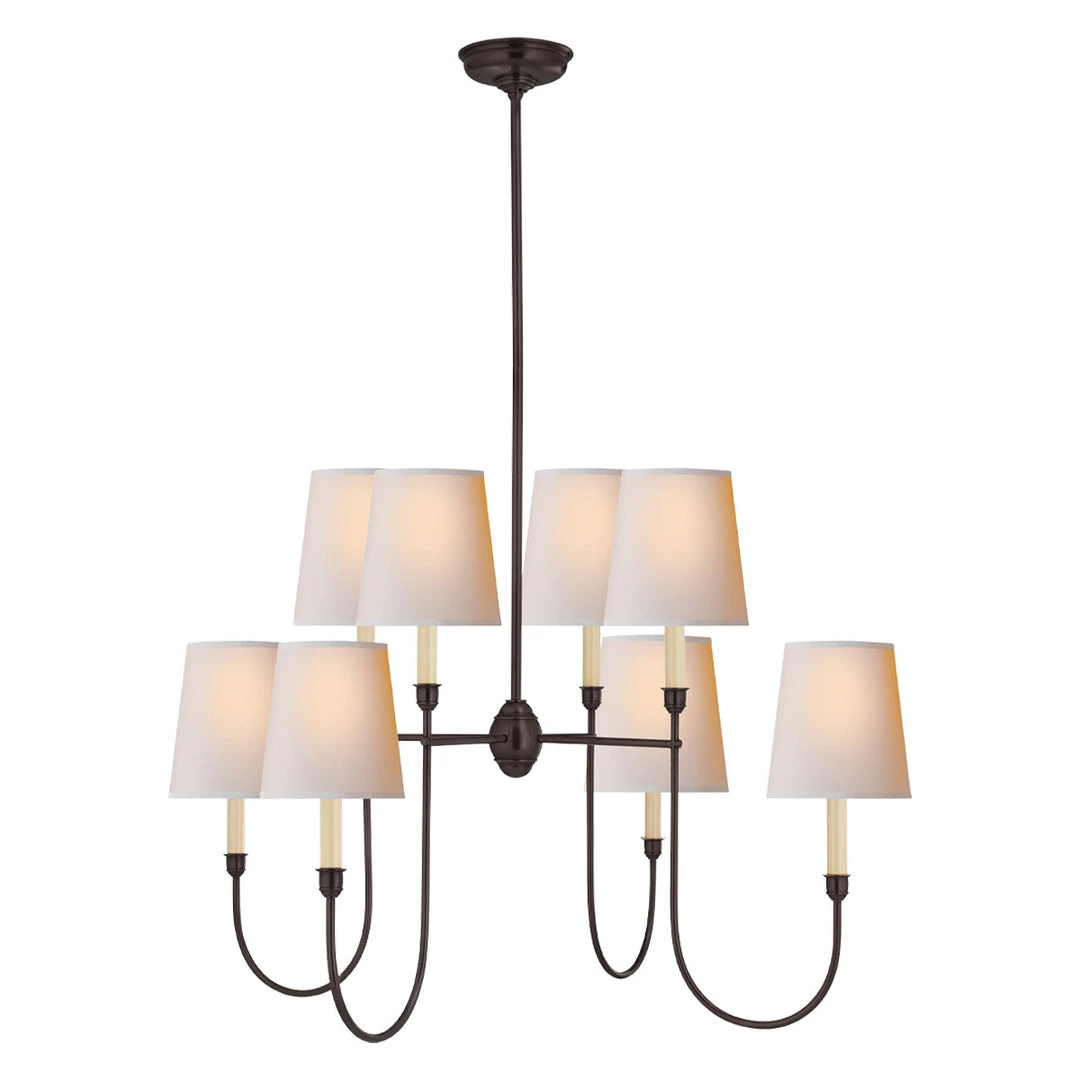 The Vendome Large Chandelier is finished in a luxurious bronze with a natural paper shade. This chandelier is perfect for making a statement over a dining table or in an entry. Custom height available.Â
