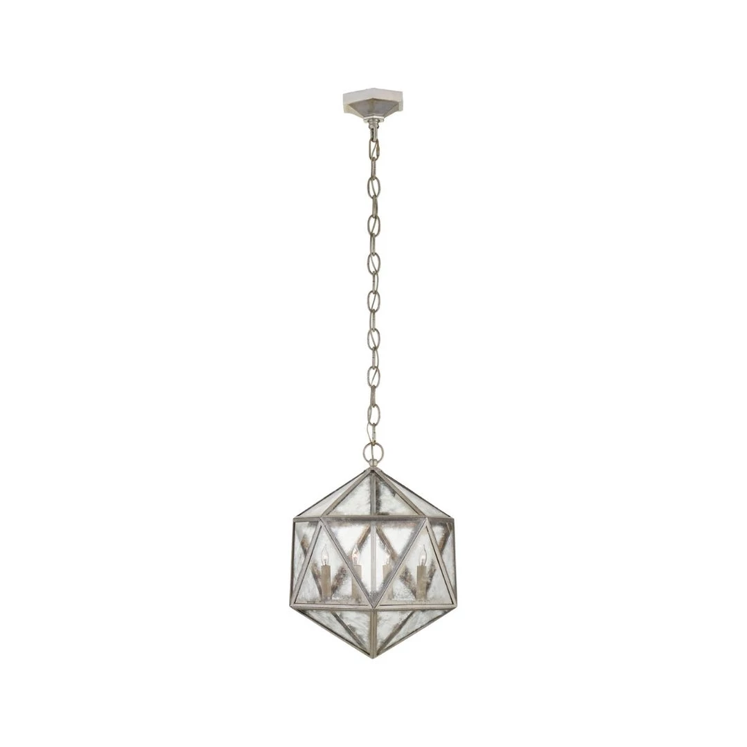 The Zeno Medium Facet Hedron Lantern features a geometric shape with an antique mirror styled exterior. Available in different finish options, the Zeno Lantern is perfect for your living room, entry or dining area.