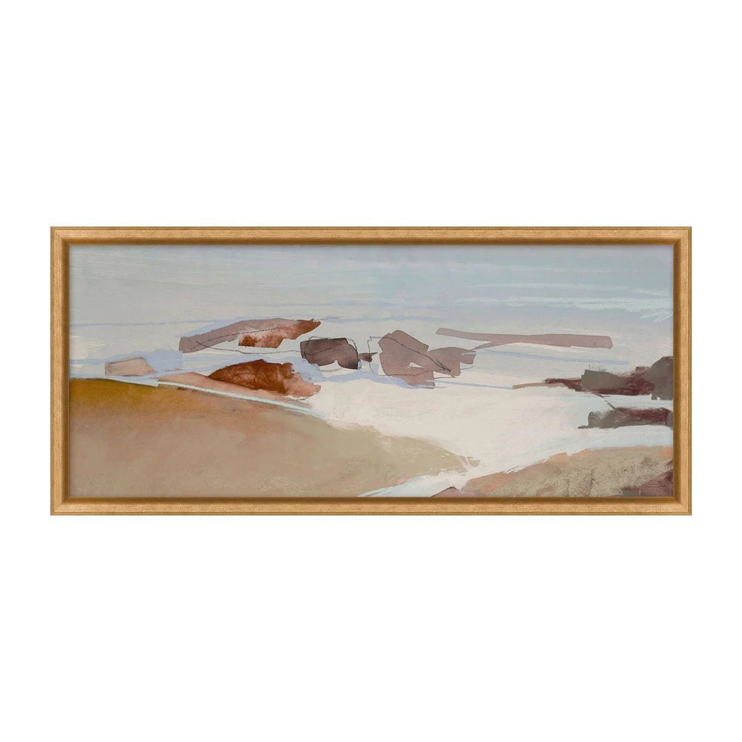 Seashore is a neutrally-toned replica painting featuring delicate tones of blue, white, mauve, and sand that create a dreamy scene.