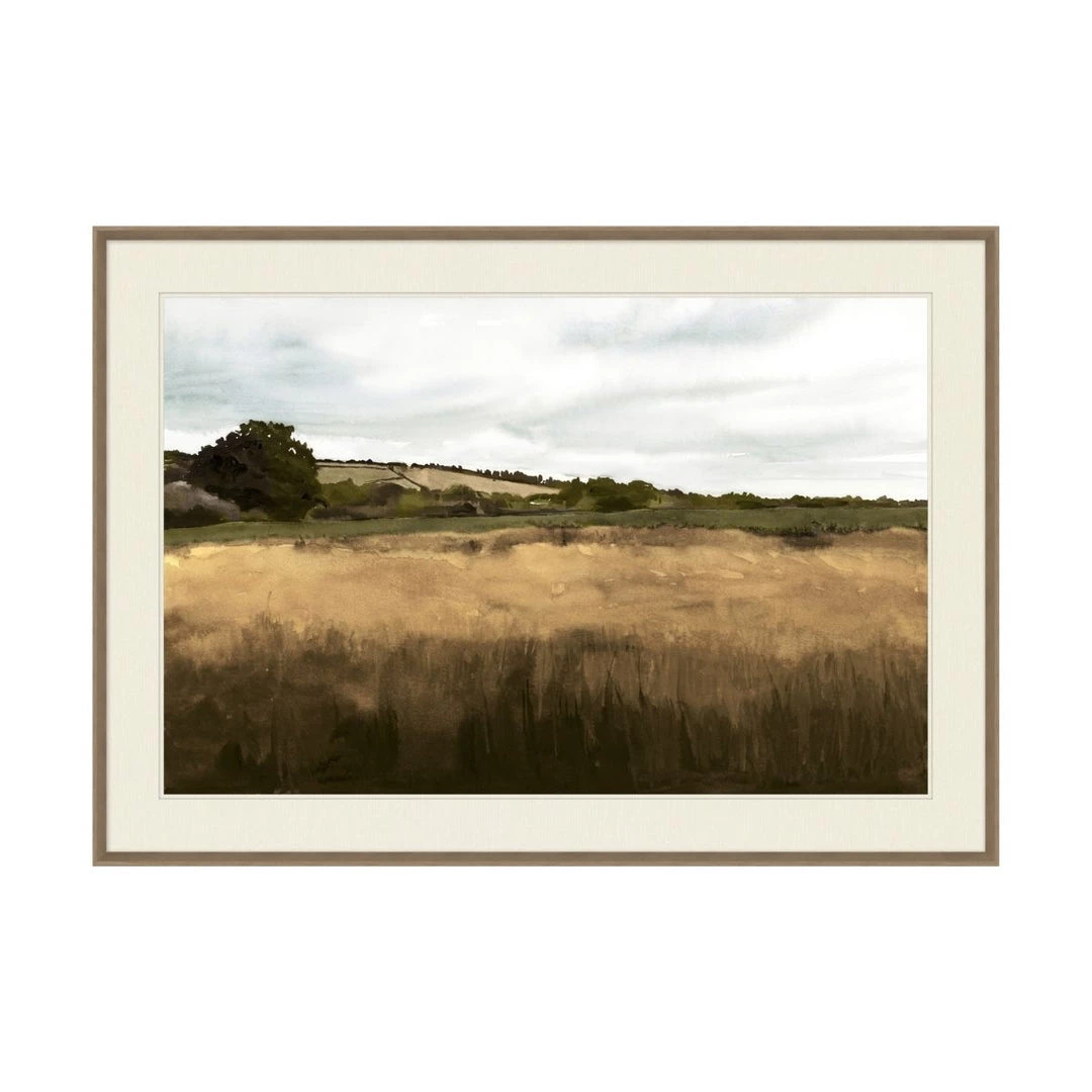 Shoreham Fields is inspired by wide open fields with warm beige and green hues. With its picturesque motif and contrasting tones, this piece will heighten your art wall and add interest to your space.