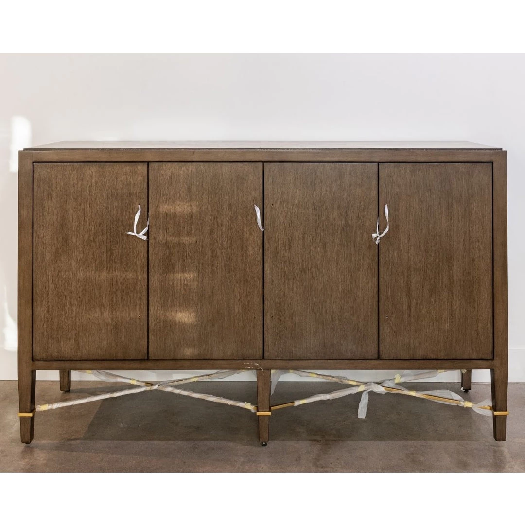 The Veneto Sideboard embodies elegance with its thoughtful accents and metal detailing. This sexy sideboard will elevate any room decor. With linen-wrapped metal handles, soft-close door hinges, six adjustable interior shelves, adjustable glides, media cord management and an anti-tip kit the Veneto offers so much more than just its good looks.