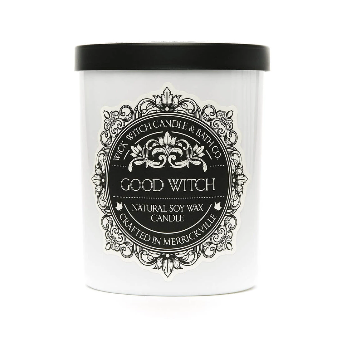 The Good Witch Soy Candle is a premium candle handcrafted in Merrickville, Ontario in small batches for West of Main Shoppe. Enjoy the scent of sweetgrass, violet flower and citrus.